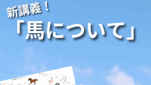 - 【基礎・応用コース】に馬ついての授業が追加されました!【基礎・応用コース】馬ついての授業が登場しました!! コチラのリンク先より各コースで受講可能な授業がご確認いた… 続きを読む: 【基礎・応用コース】に馬ついての授業が追加されました!